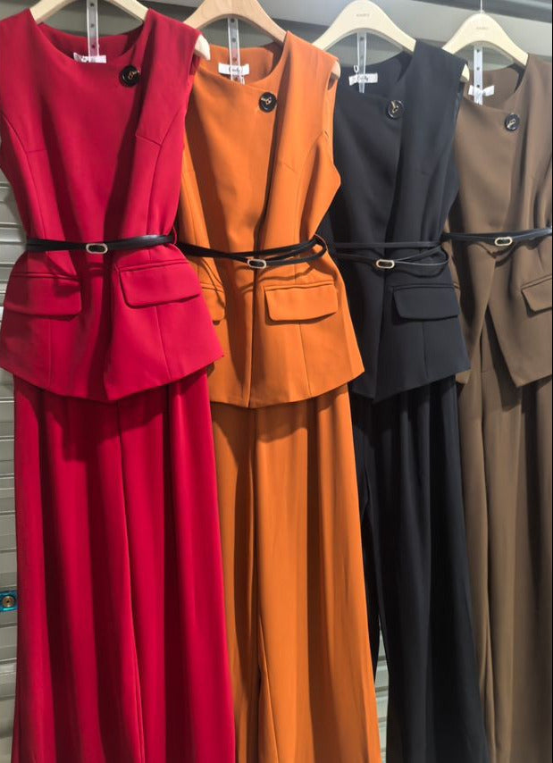 This versatile two-piece ensemble delivers coordinated style with practical versatility. Each component is designed to work independently or together, allowing you to maximize your wardrobe combinations. Perfect for those seeking coordinated pieces that adapt to multiple occasions and styling preferences.