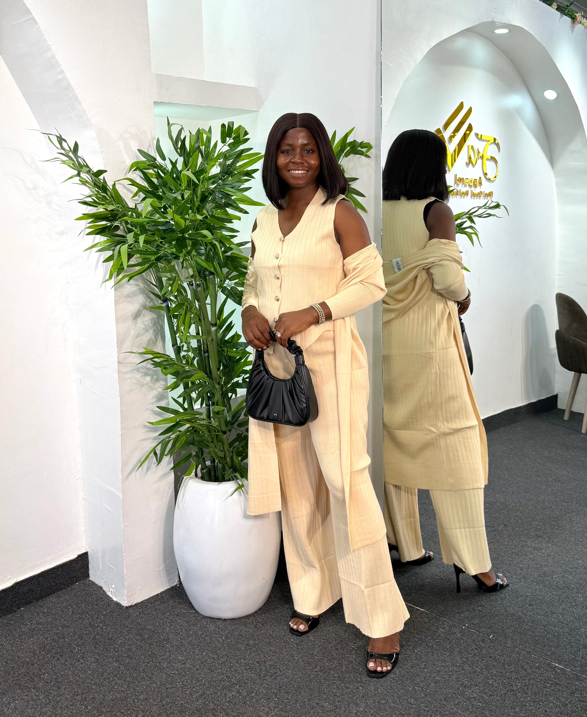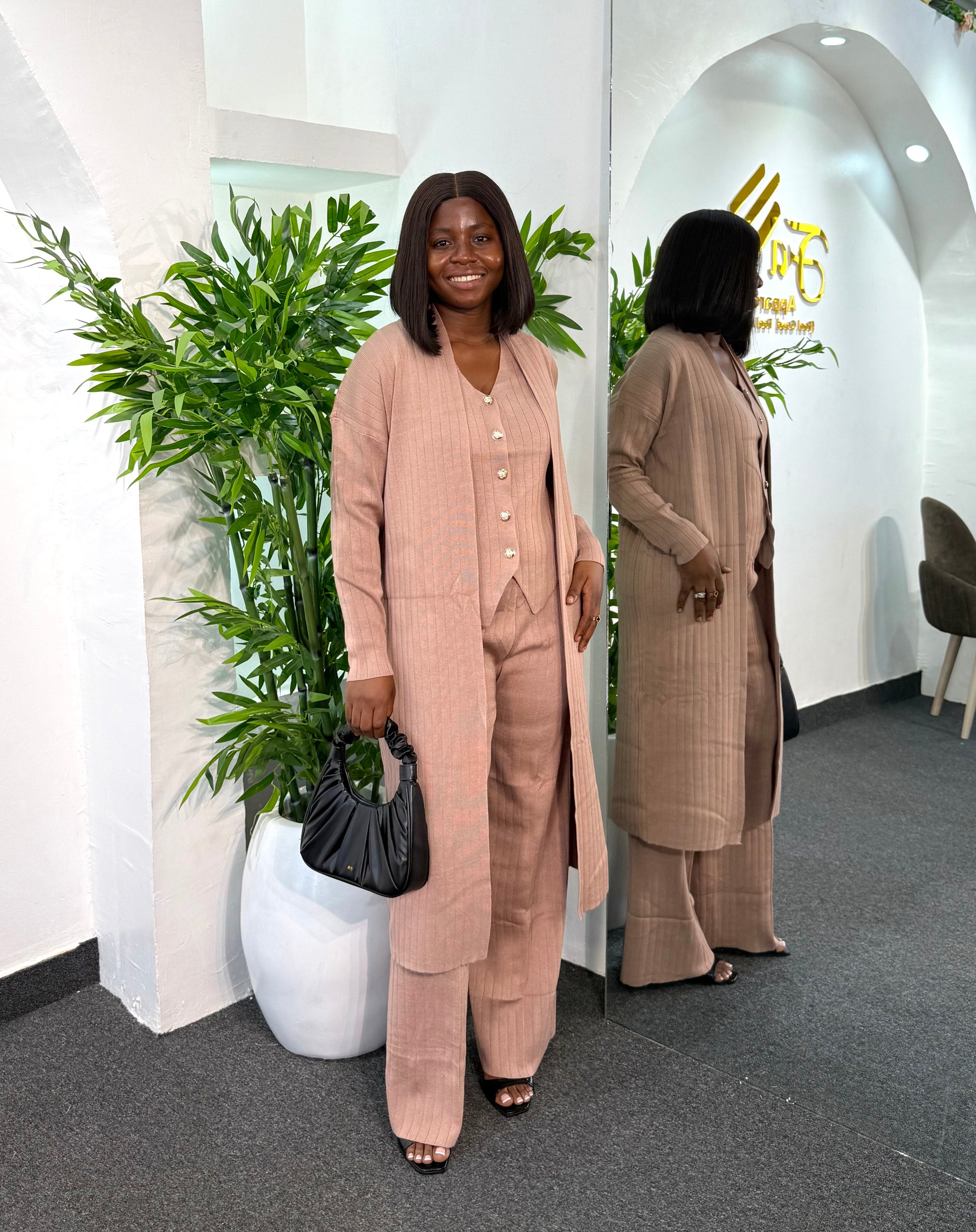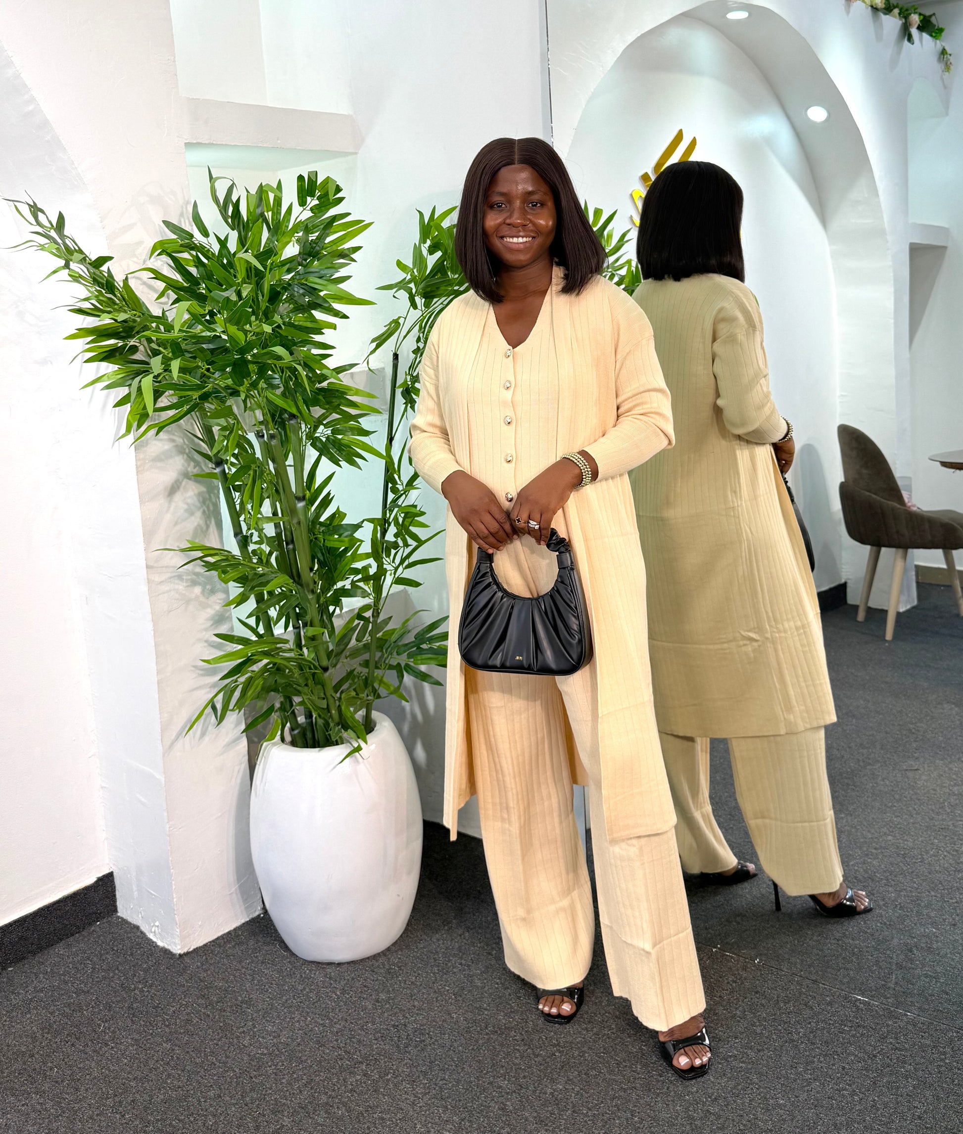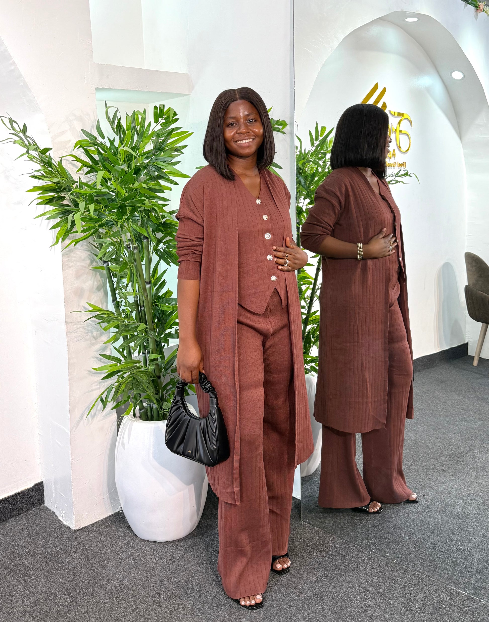 Elevate your wardrobe with this sophisticated set. Designed for comfort and style, these high-rise pants come in a 42-inch length for a sleek, flattering fit. Perfect for those who appreciate refined fashion, the set delivers versatility for both casual and semi-formal occasions.