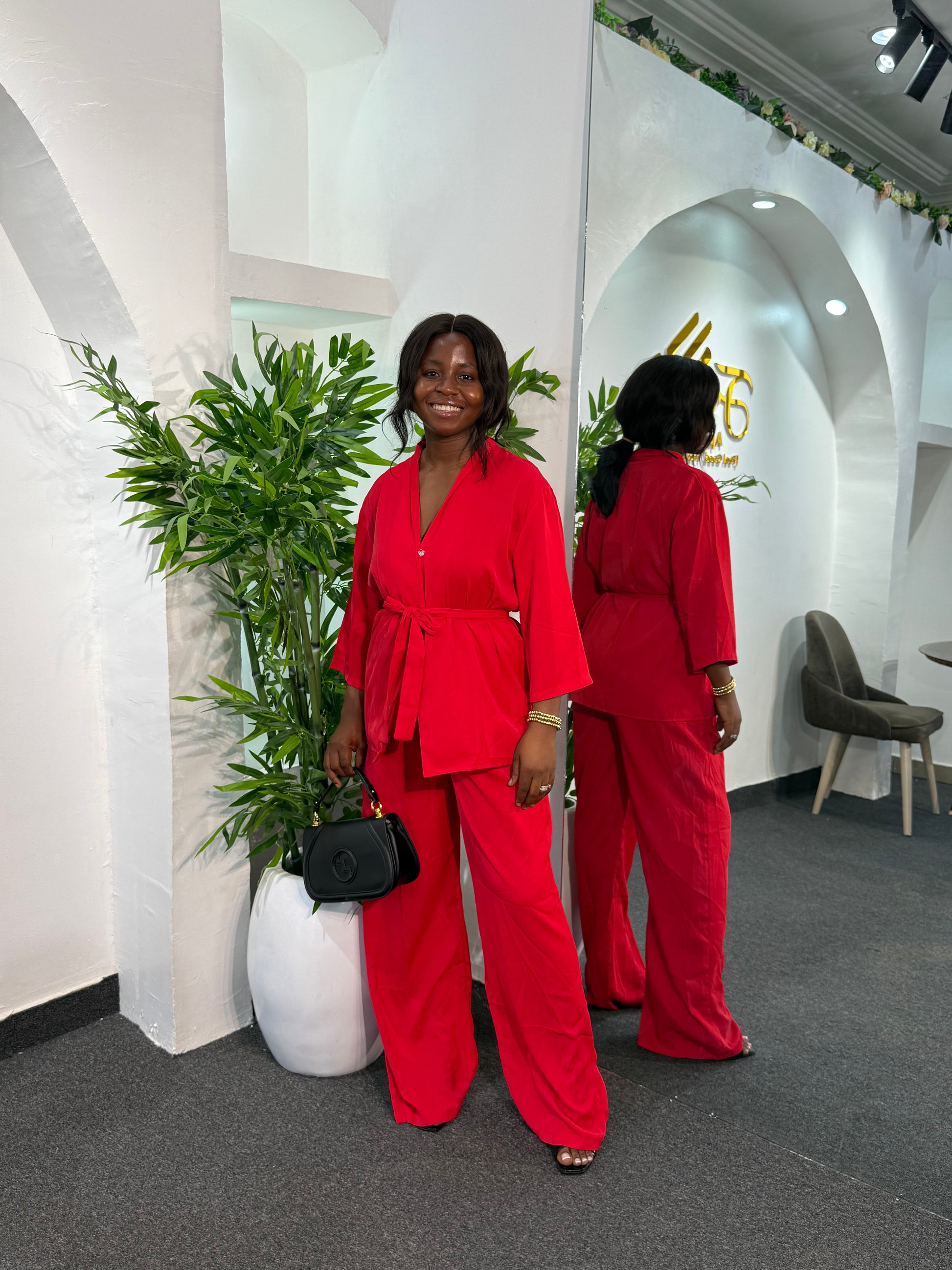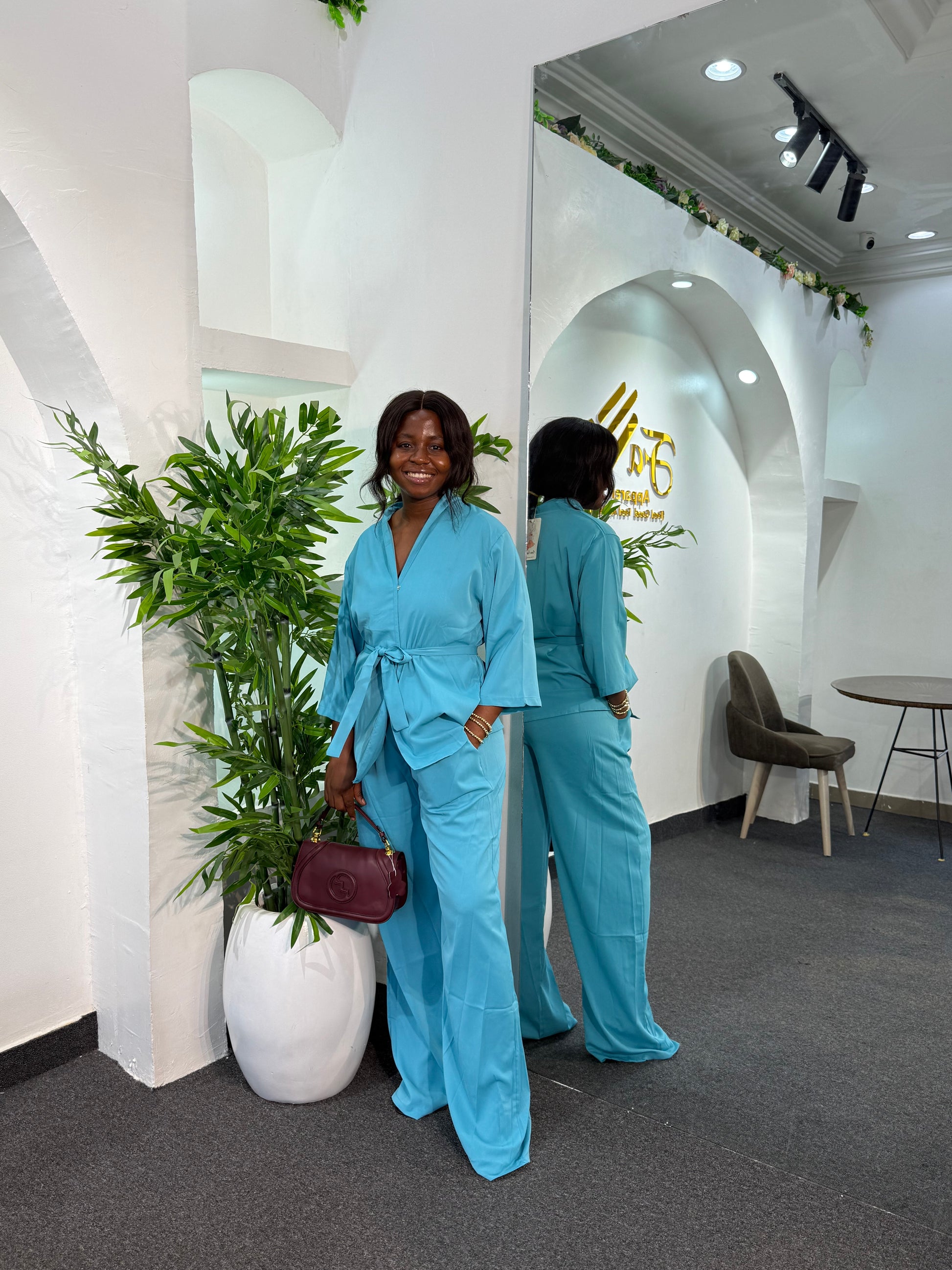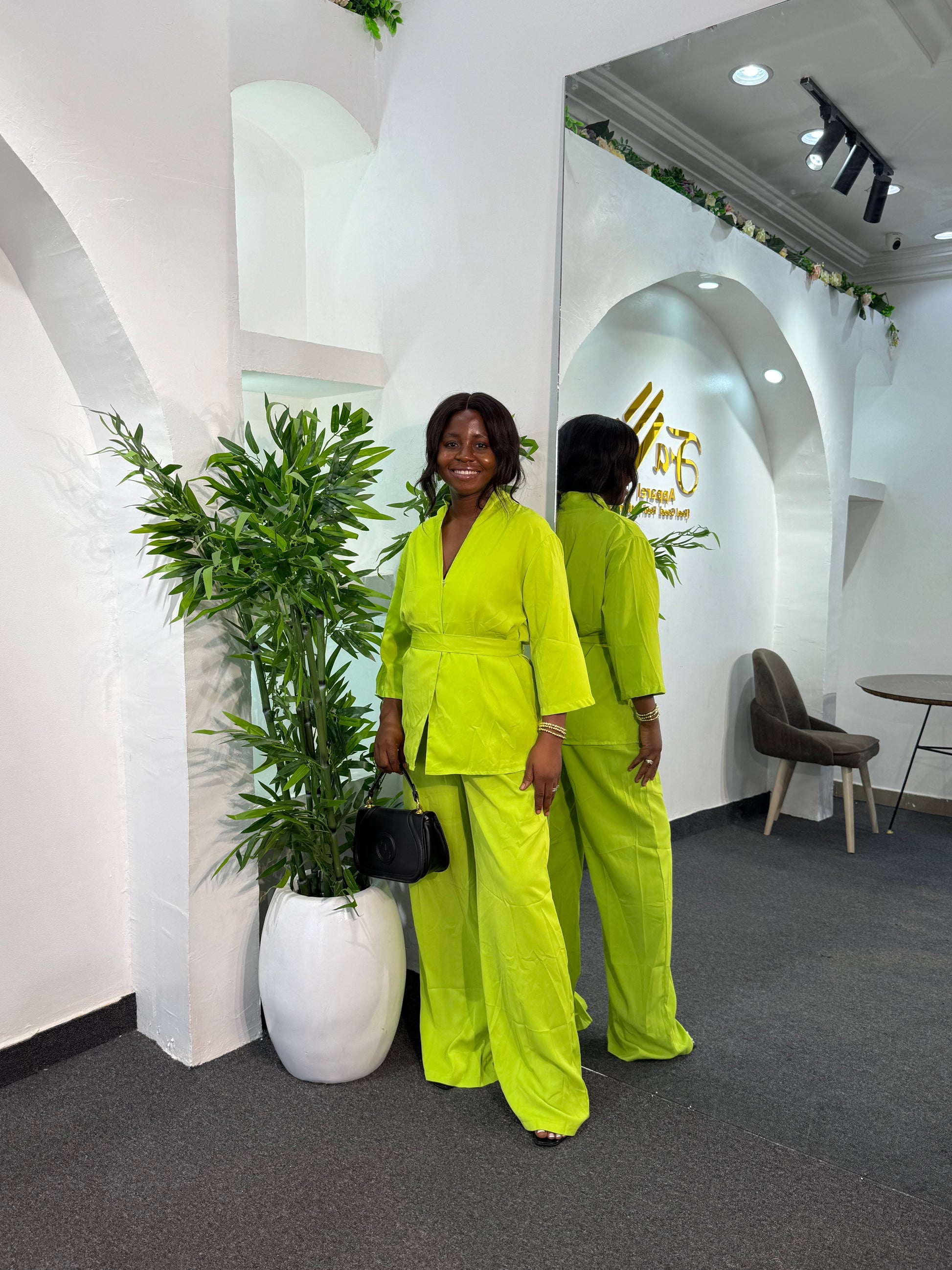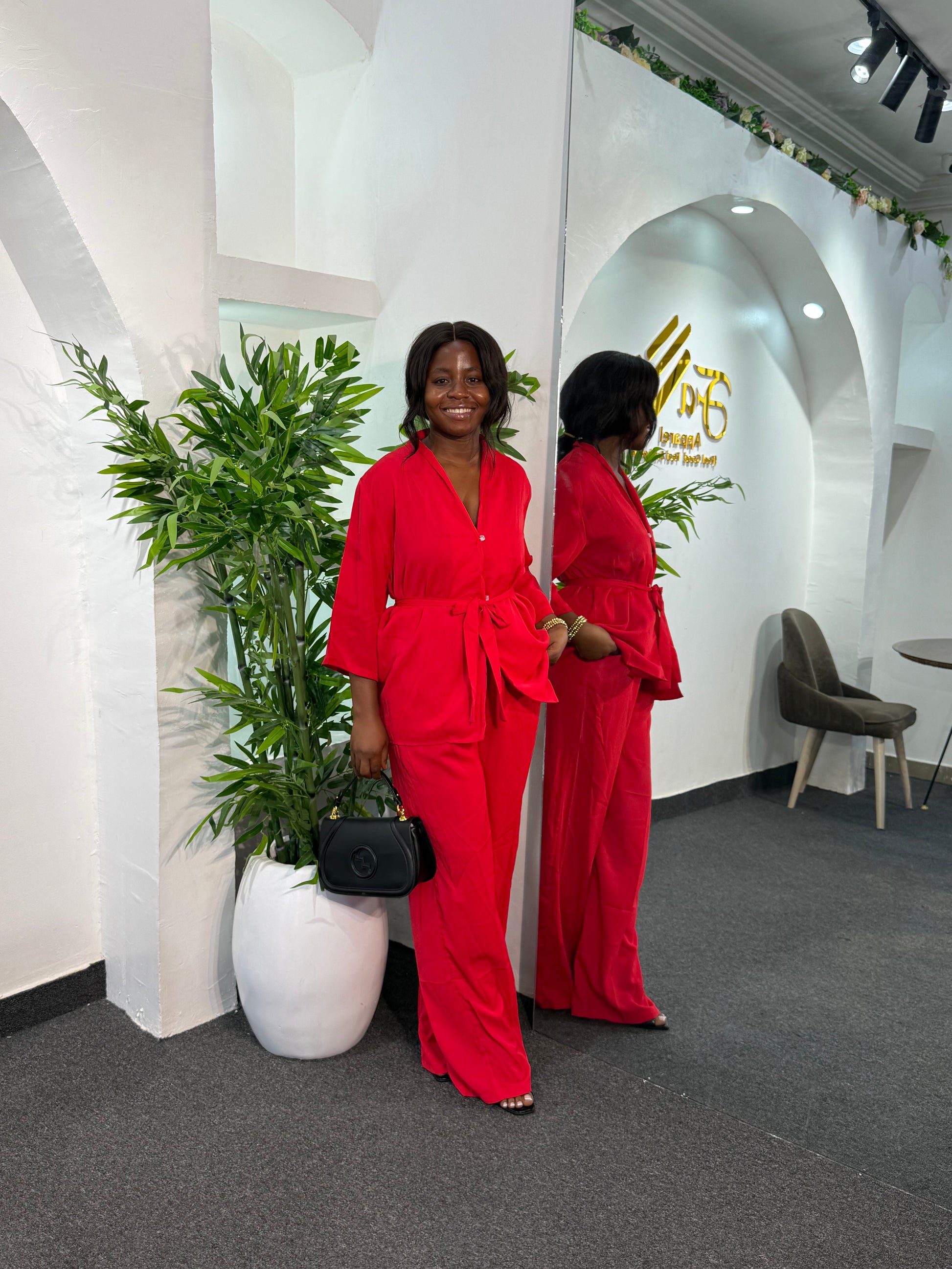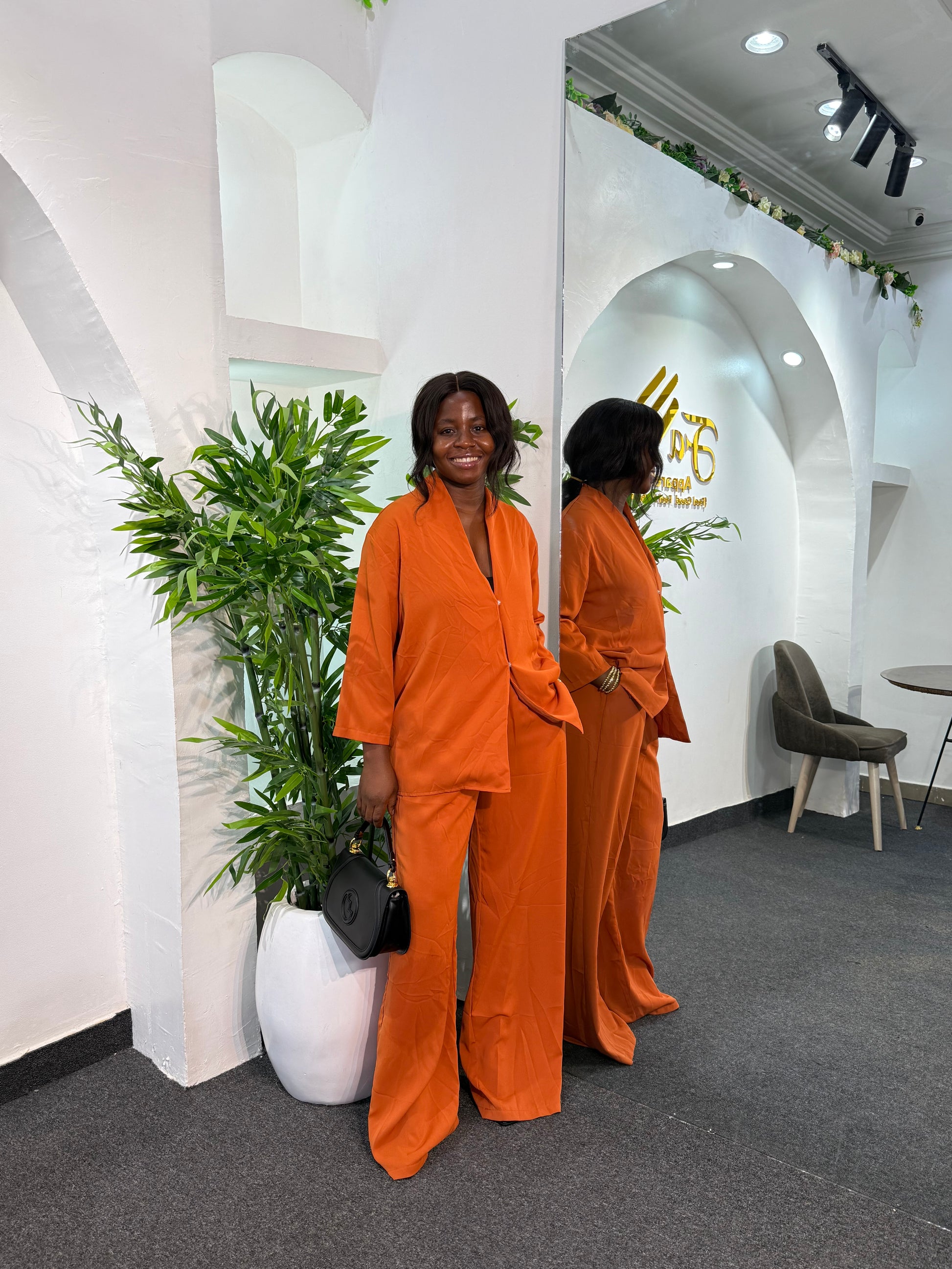 Elevate your wardrobe with this sophisticated set. Designed for comfort and style, these high-rise pants come in a 45-inch length for a sleek, flattering fit. Perfect for those who appreciate refined fashion, the set delivers versatility for both casual and semi-formal occasions.