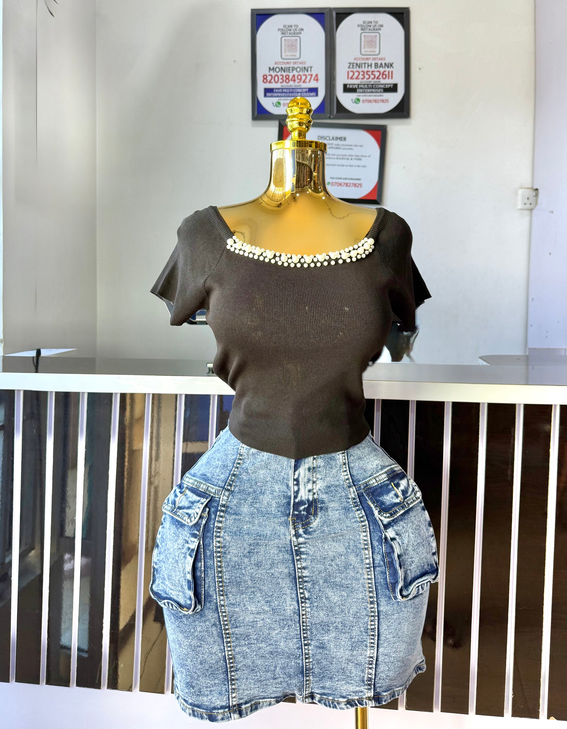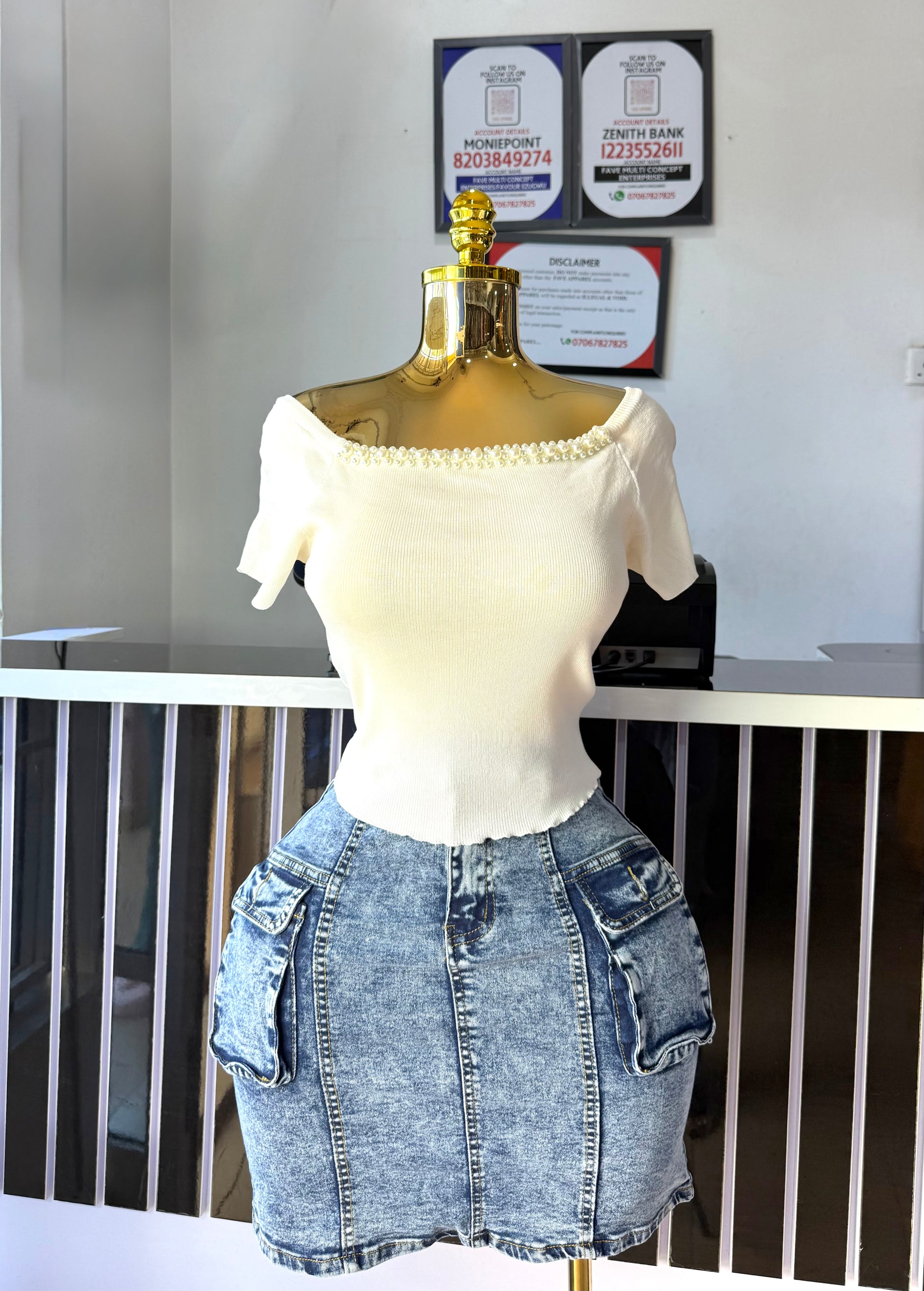 Knit pearl neck Y5817