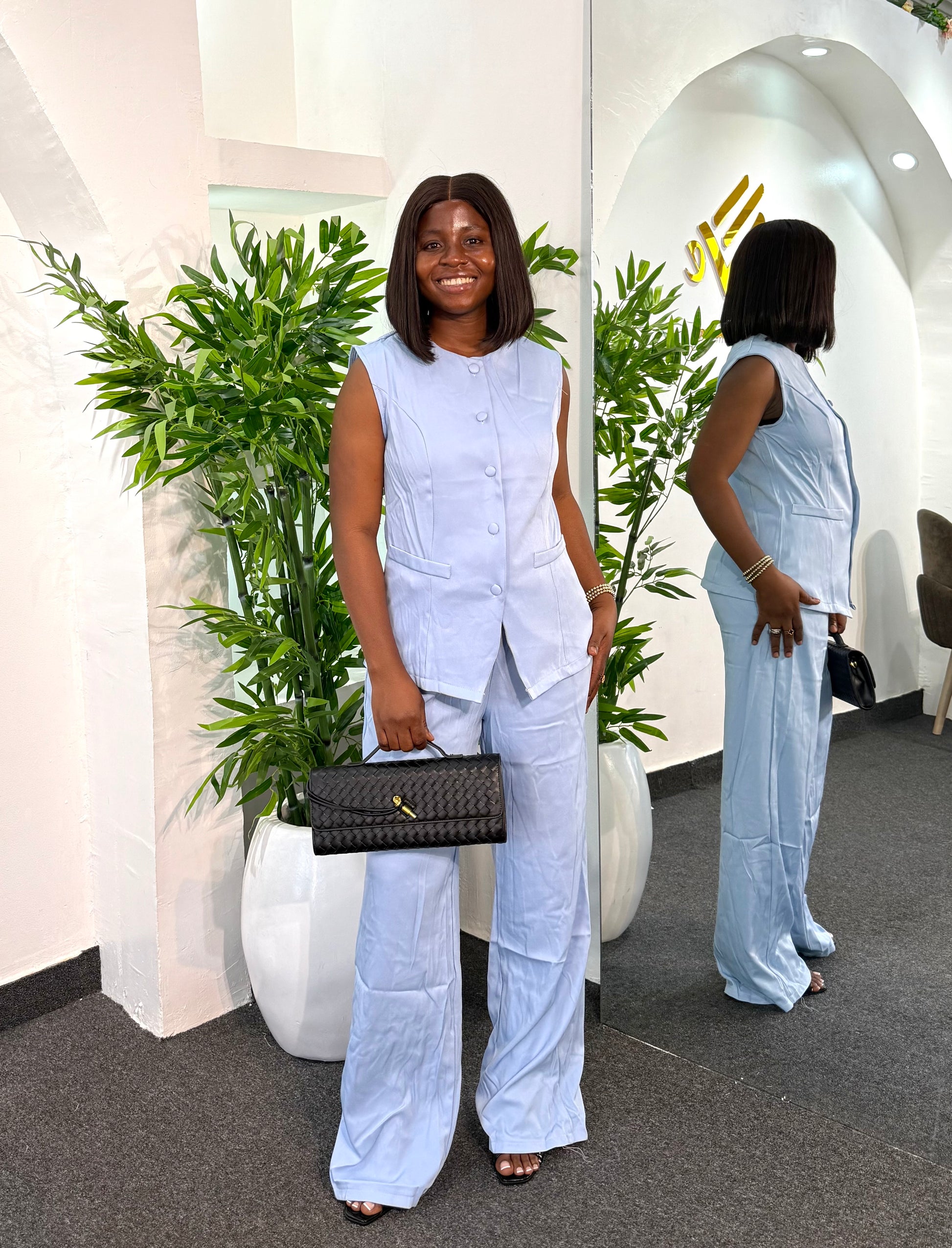 Elevate your formal wardrobe with this sophisticated belt waistcoat set, designed for comfort and style, these high-rise pants come in a 45-inch length for a sleek, flattering fit. The coordinated pairing combines a tailored waistcoat with a complementary belt, creating a polished, put-together look ideal for weddings, business events, or upscale occasions.
