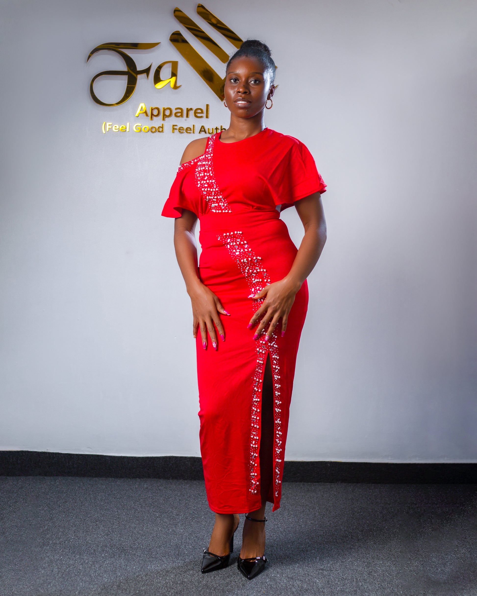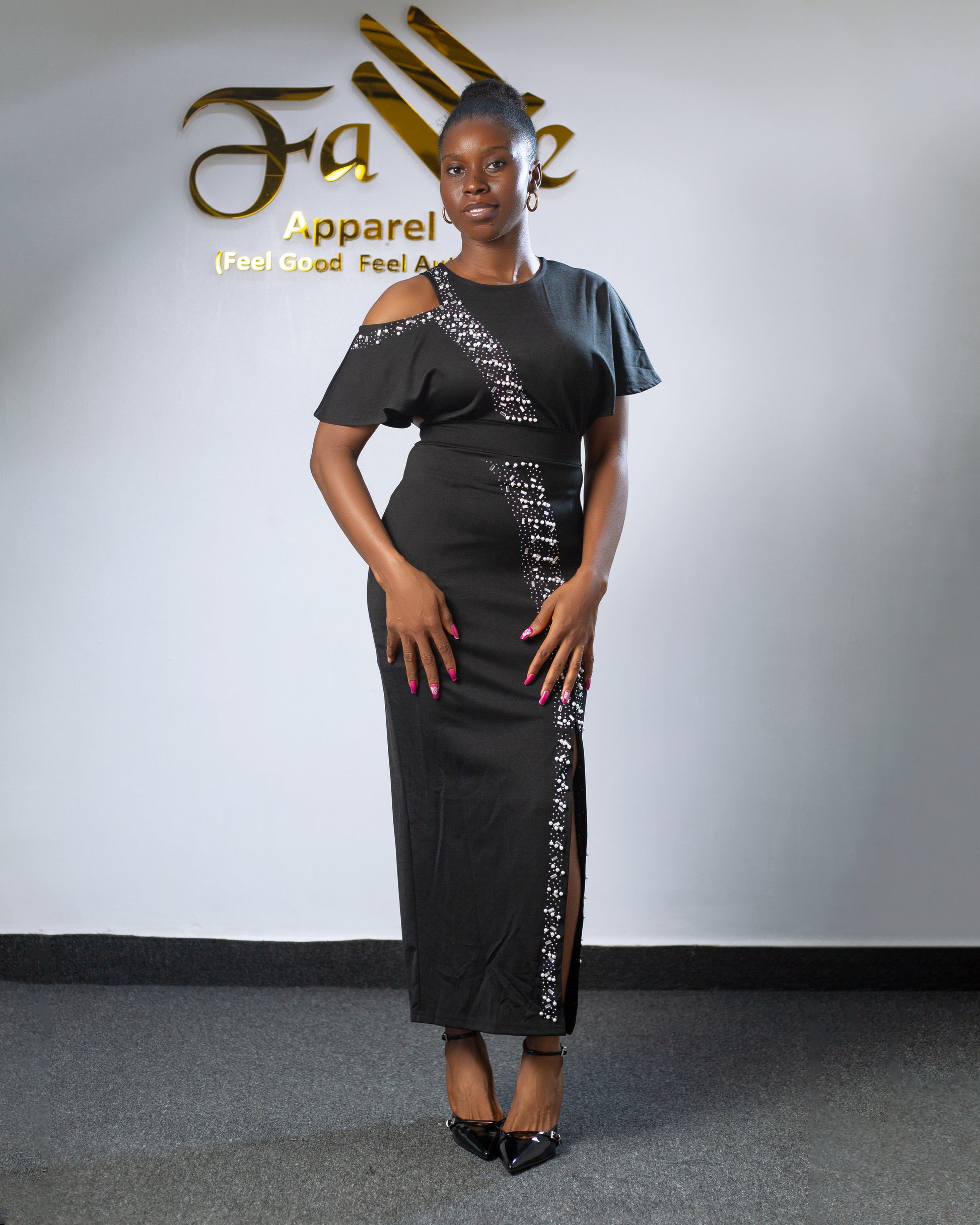 Elevate your wardrobe with the Stoned Dress, expertly crafted to combine elegance and subtle texture.